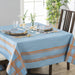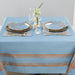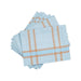 Elevate and enhance your dining room decor with French Home's luxurious 14" x 21" Boulevard 100% woven linen placemats made in Portugal. The vibrant border of criss-crossing warm terracotta stripes against a fresh light-wash denim backdrop is spectacularly showcased by the jacquard linen fabric and is the ideal finishing touch for a casually elegant table setting. When taken care of properly, these high-quality linen placemats can provide a lifetime of use. Steaming or ironing is required for peak smoothness and crispness after cleaning, in your washing machine or professionally.
