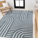 The geometric pattern of this modern rug is inspired by minimalist Scandinavian designs. Soft polypropylene fibers are woven into stripes with abstract arch accents, in a high-low pile that accentuates the pattern. Use this easy-care, family-friendly rug on the porch or deck, or in high traffic spaces like a living room, dining room, or entry.