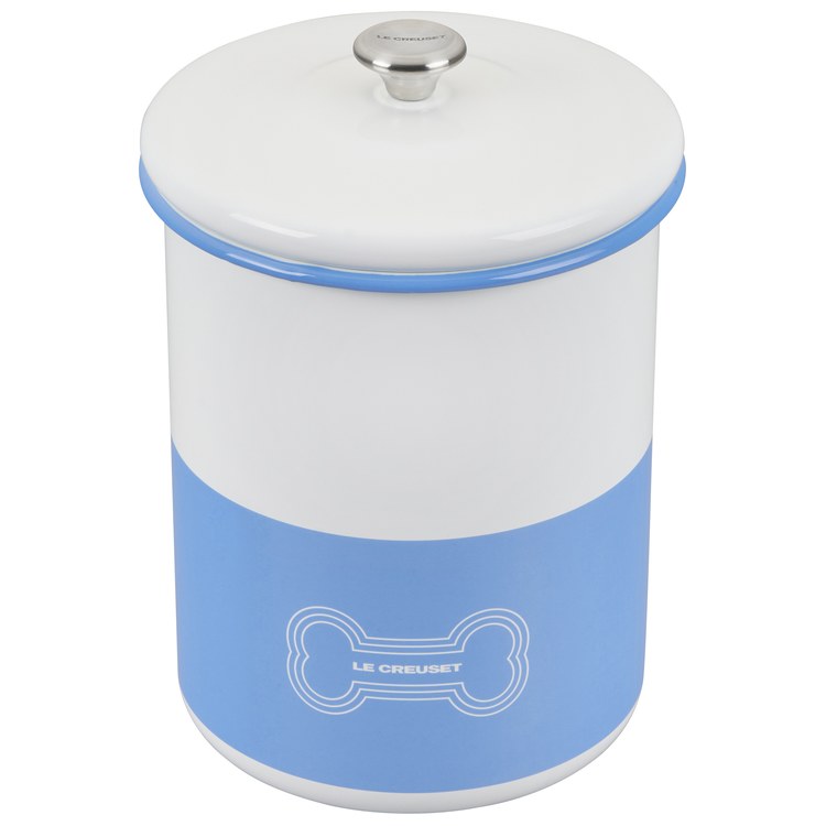 The Le Creuset Treat Jar is a stylish way to create happy meals for happy dogs. Crafted from human-grade carbon steel, the jar has a generous 4.25 quart capacity that is paw-fect for storing kibble and tasty treats. It's finished with a colorful glaze and Le Creuset's iconic three rings in a fetching dog bone design, and topped with a signature stainless steel knob that coordinates with other Le Creuset cookware. As dependable as your best friend, the enamel coating is hygienic, easy to clean, and resistant to chips, stains, scratches, and rust. Bone appetit! Crafted from premium carbon steel to keep food hot or cold.