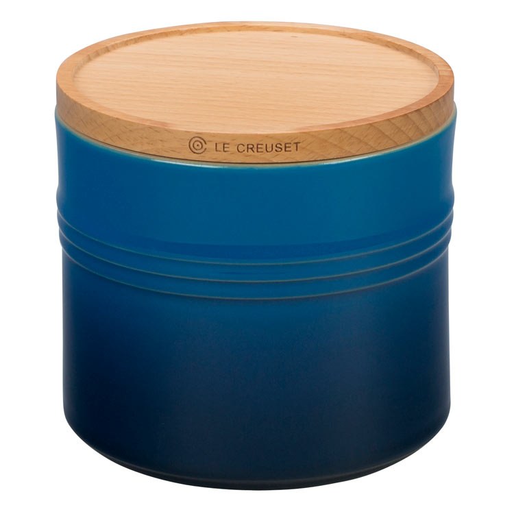 Offering maximum storage efficiency, this sleek, colorful 1.5-quart canister comes with a tight-sealing beech wood lid that allows for easy stacking on the counter or in cabinets. An airtight silicone gasket and a hard-wearing enamel finish make this canister as functional as it is beautiful.