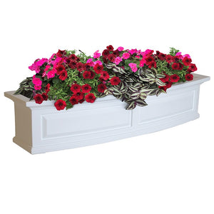 Give your home a classic look with these Nantucket Window Boxes. This 48" decorative planter features a bowed front, raised panel design, pronounced crown molding detail, built-in overflow drains, and a sub-irrigation water system that keeps the soil moist to encourage root growth. Made of durable, high-grade polyethylene with a double-wall design, the planters are weather resistant and low maintenance for long-lasting beauty. Includes two steel wall-mount brackets with a black powder-coated finish. Made in the USA. Mayne products are backed by a 15-year manufacturer's warranty against fading, bulging, and cracking.