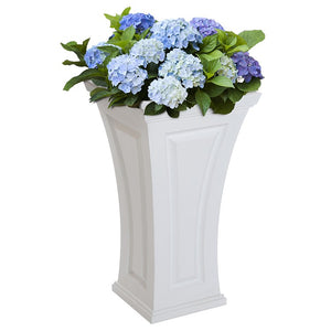 The Cambridge Tall Planter offers you a blend of modern and traditional design. The curved shape creates a unique and classy look, providing a beautiful accent to the entrance of any home. Features a single-wall, molded design with high-grade polyethylene construction. Includes a self-watering tray insert that creates a sub-irrigation water system to encourage root growth. The tray can be reversed to support a potted plant or removed so the planter can be completely filled with soil. Made in the USA. Mayne products are backed by a 15-year manufacturer's warranty against fading, bulging, and cracking.