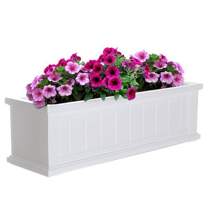 Looking to add curb appeal? Enhance the look of your home with Mayne's Cape Cod window box planters. Accent the edge of your patio or add a finishing touch under your windows. These 36" long Cape Cod Window Boxes also feature a water reservoir that creates a self-watering effect to keep your plants looking fresh! Durably constructed from double-walled, high-grade polyethylene, the window box features an attractive beaded panel design. Uses a sub-irrigation water system to keep soil moist and encourage root growth. Includes three wall-mount brackets with a black powder-coated finish that allow easy removal of the planter in colder weather. Made in the USA. Mayne products are backed by a 15-year manufacturer's warranty against fading, bulging, and cracking.