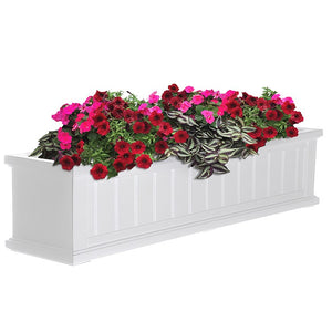 Looking to add curb appeal? Enhance the look of your home with Mayne's Cape Cod window box planters. Accent the edge of your patio or add a finishing touch under your windows. These 48" long Cape Cod Window Boxes also feature a water reservoir that creates a self-watering effect to keep your plants looking fresh! Durably constructed from double-walled, high-grade polyethylene, the window box features an attractive beaded panel design. Uses a sub-irrigation water system to keep soil moist and encourage root growth. Includes three wall-mount brackets with a black powder-coated finish that allow easy removal of the planter in colder weather. Made in the USA. Mayne products are backed by a 15-year manufacturer's warranty against fading, bulging, and cracking.