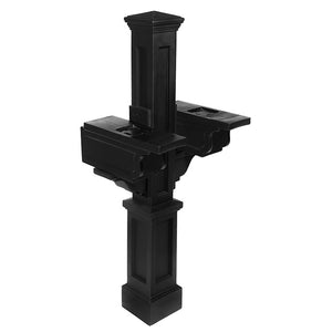 Round out an already beautiful lawn with the classic style of this Mayne Rockport Double Mail Post. The double-arm post lets you come together with a neighbor or spice up a multi-family home. With its side-mounted design, it makes a great fit for mail boxes with front and back doors to avoid walking onto the street to retrieve your mail. The mail post installs easily over a standard 4" x 4" wood post and is made from high-quality polyethylene with built-in UV inhibitors for long-lasting protection from the elements. The decorative post includes two side-mount support arms, each with a convenient newspaper holder. Made in the USA. Mayne products are backed by a 15-year manufacturer's warranty against fading, bulging, and cracking.