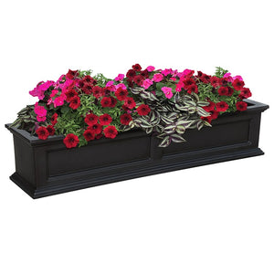 Why limit your style to the indoors? These five-foot long Fairfield Window Boxes will transform your property into a personal retreat with outdoor flair. Durably constructed from molded, high-grade polyethylene, these New England style planters feature a double-wall design with a built-in water reservoir to encourage healthy plant growth by allowing plants to practically water themselves. Includes three wall-mount brackets with a black powder-coated finish. Made in the USA. Mayne products are backed by a 15-year manufacturer's warranty against fading, bulging, and cracking.