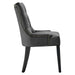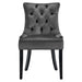 Transport your dining room decor to a simpler time with the Regent Tufted Button Upholstered Performance Velvet Dining Chair. With a chic and elegant look, the Regent Accent Chair features finely tufted buttons and studded nailhead trim that enhance any dining room, living room, lounge room, or office decor with timeless elegance. The Regent Dining Chair has a seat generously padded with foam and a spring coil system with webbing for long-lasting comfort. Covered in stain-resistant performance velvet upholstery, the Regent Dining Room Side Chair comes with non-marking foot caps, tapered wood legs, and is a masterful choice for modern and traditional dining and living rooms.
