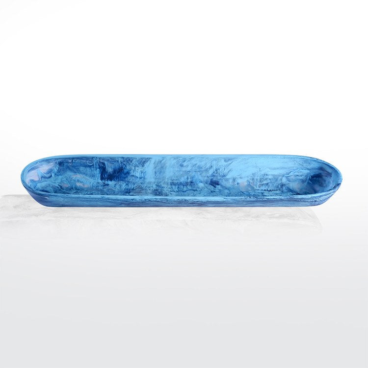 Inspired by the iconic beaches of Sydney, Nashi Home's Signature Collection of products reflect the captivating waves, beautiful aqua water, and soft sands in their swirls, textures, and vibrant colors. The unique shapes and sizes of these homewares are carefully designed to be easily mixed and matched, providing versatility for home decor and everyday entertaining. This Signature Collection extra-long boat bowl is made of handcrafted and hand-poured resin, making it a unique and colorful addition that is designed to be mixed and matched with other pieces for use as home decor and for entertaining. The individually handcrafted nature makes each piece unique, and slight variation in color may occur. We recommend that your Nashi Home product be handwashed in warm water and occasionally rubbed with a few drops of cooking oil to maintain its sheen and beauty.