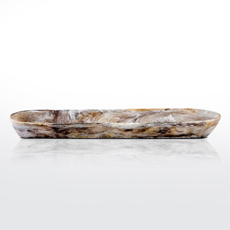 Inspired by the iconic beaches of Sydney, Nashi Home's Signature Collection of products reflect the captivating waves, beautiful aqua water, and soft sands in their swirls, textures, and vibrant colors. The unique shapes and sizes of these homewares are carefully designed to be easily mixed and matched, providing versatility for home decor and everyday entertaining. This Signature Collection extra-long boat bowl is made of handcrafted and hand-poured resin, making it a unique and colorful addition that is designed to be mixed and matched with other pieces for use as home decor and for entertaining. The individually handcrafted nature makes each piece unique, and slight variation in color may occur. We recommend that your Nashi Home product be handwashed in warm water and occasionally rubbed with a few drops of cooking oil to maintain its sheen and beauty.