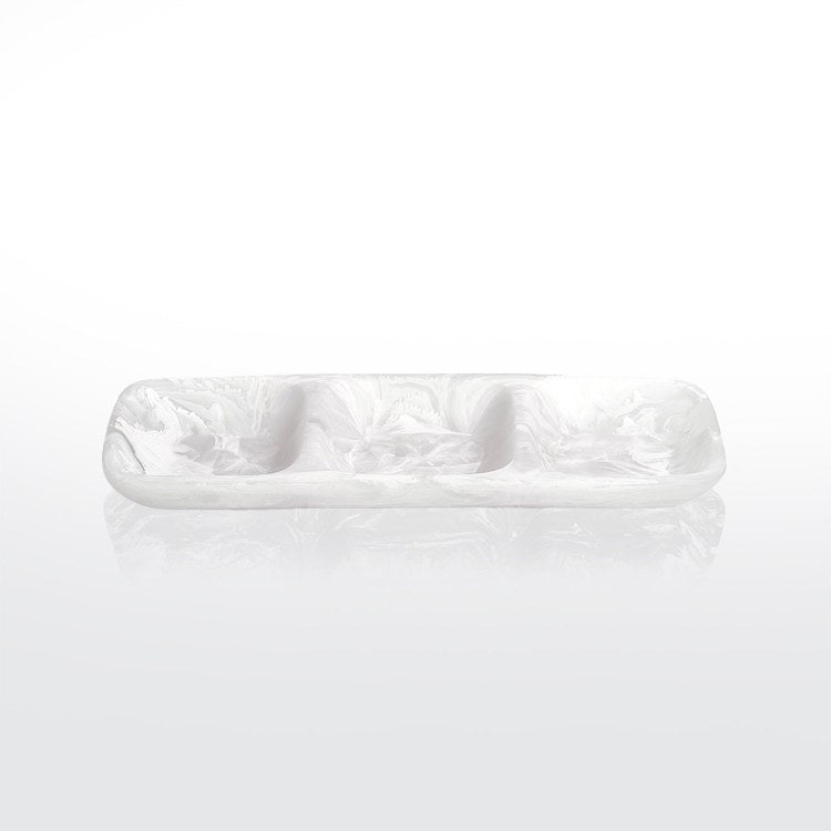 Liven up your home with a beautiful Nashi serving piece. All Nashi Home products are designed in unique shapes and sizes that are easy to mix and match for home decor and everyday entertaining. this Everyday Collection medium three-part tray is made of handcrafted and individually poured resin, making each piece unique. Due to the nature of the material, slight variation in color may occur. We recommend that your Nashi Home product be handwashed in warm water and occasionally rubbed with a few drops of cooking oil to maintain its sheen and beauty.