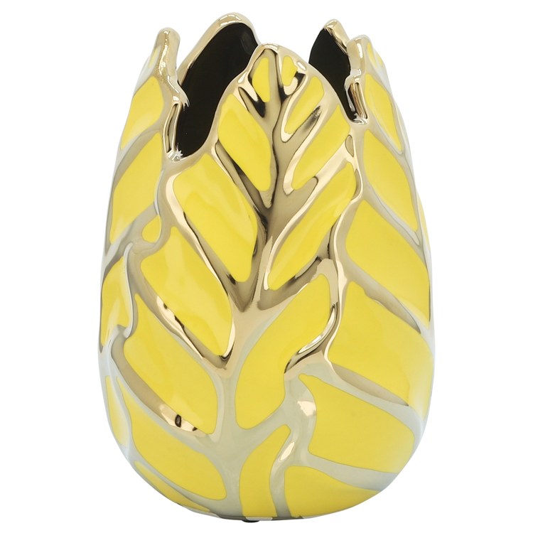 8" Ceramic Leaf Vase - Yellow/Gold