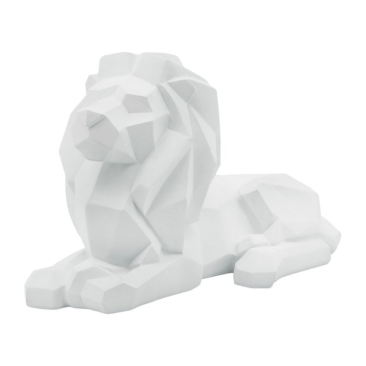 Bring a touch of majesty, strength, and courage to your home's decor with this stunning lion figurine. This laying lion white polyresin figurine is accentuated by sharp angles in its sculpted form, giving it a sleek, modern look with superb detail to add a piece of artistry to the room. Display it proudly on any tabletop or shelf in your home!